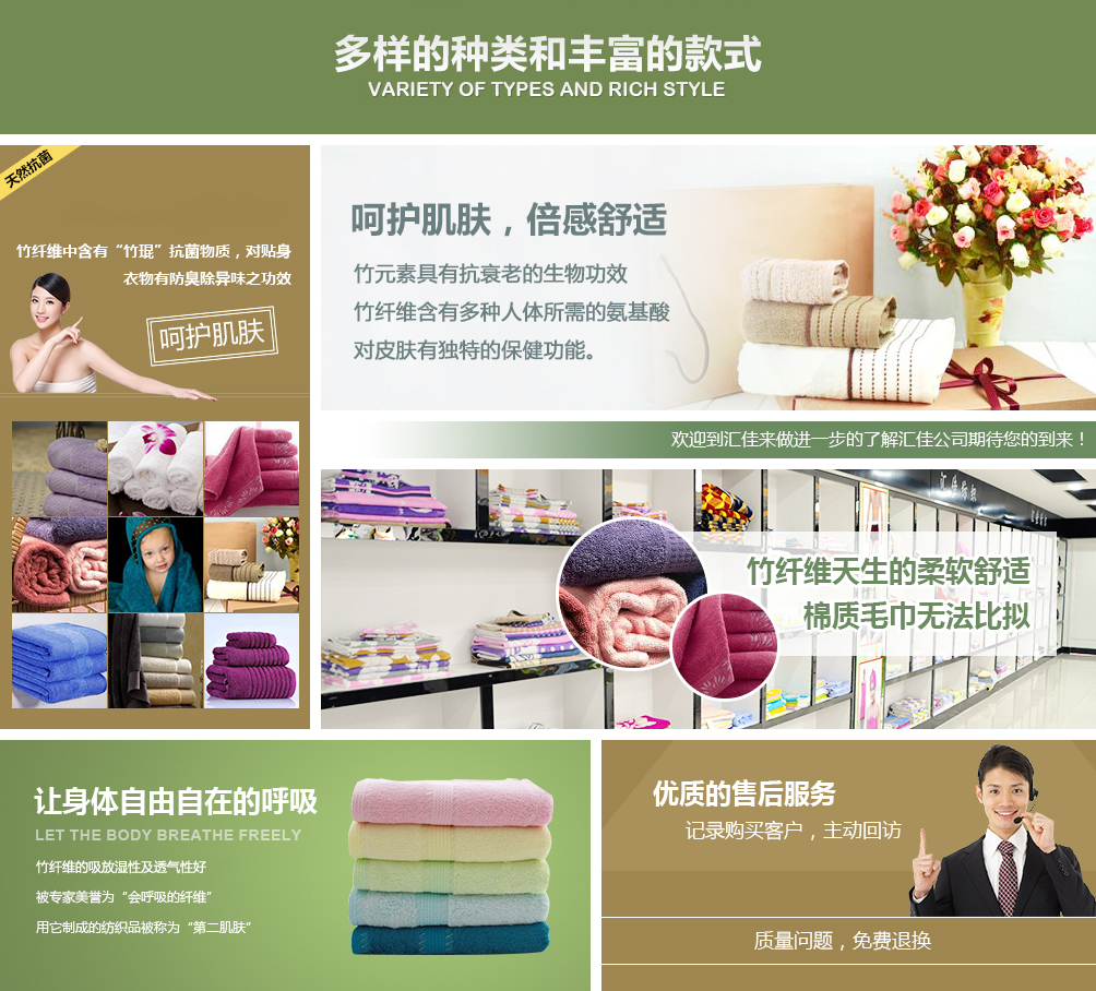德州匯佳紡織品有限公司專業(yè)生產(chǎn)竹纖維毛巾,是竹纖維毛巾品牌廠家,并且提供竹纖維毛巾禮盒套裝用于福利和禮品。公司座落于山東德州,交通十分便利,公司近臨京滬高速公路,距離德州火車(chē)站、汽車(chē)站10公里京滬高鐵5公里,濟(jì)南國(guó)際機(jī)場(chǎng)120公里。